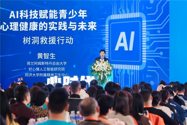 树洞救援行动创始人、荷兰阿姆斯特丹自由大学人工智能系终身教授、好心情人工智能研究院院长黄智生在主题演讲《AI科技赋能青少年心理健康的实践与未来》中,详细介绍了科技干预的核心机制。该行动建立了0-10级自杀风险评估体系,其中10级为正在进行的自杀行为,5级及以上将立即启动干预流程。通过社交媒体数据抓取与自然语言处理技术,系统每日可识别并发布300+高危言论预警信息,形成精准监测网络。救援响应方面,由2名专家+3名志愿者组成的5人干预小组,将对高风险案例开展为期3个月的持续陪伴式心理疏导。七年实践成效显著:该行动累计成功阻止6800+次自杀行为,干预成功率高达99.5%。2019年云南女孩楼顶自杀事件中,救援团队通过照片建筑特征精准定位,发动3万+社会力量参与救援,最终成功挽救生命的案例,让现场嘉宾深刻感受到科技与人文结合的救援力量。
