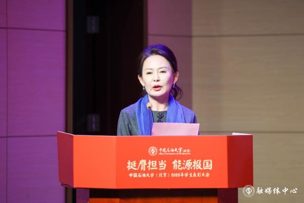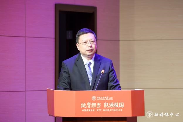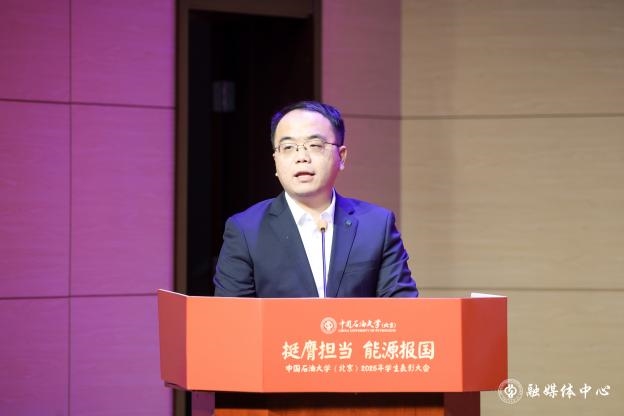 他表示,学校已连续20年举办颁奖典礼,这次聚焦“挺膺担当 能源报国”主题作出升级调整,重新建构学生荣誉体系,首次评选中石大学生最高荣誉奖,全面选树展示各类优秀学生个人和先进集体典型,着力打造新时代立德树人工程重要载体,以身边榜样激发奋进力量,让遇见光、追逐光、成为光、辐射光在校园充盈彰显。他勉励广大学子要坚定报国初心,把准青春航向,把个人理想融入党和国家事业之中,在能源报国时代赛道上找准定位、奋勇争先;要加强示范带动,永葆感恩之心,以实际行动回馈社会、回报行业、传递爱心;要锤炼过硬本领,勇担时代使命,深耕专业知识,投身生产实践,提升创新创业能力,在能源强国建设新征程中勇挑重担、建功立业。