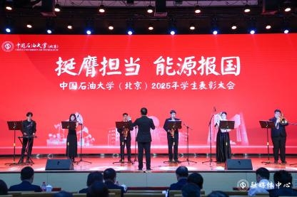 表彰大会在管弦乐合奏《步步高》激昂旋律中拉开帷幕,紧扣“挺膺担当 能源报国”主题,设置“赓续”“笃行”“致远”三个篇章,通过获奖学生代表的主题讲述,全方位展现了中石大学子胸怀家国的青春风采与矢志奋斗的青春底色。在“赓续”篇,与会嘉宾师生观看了微电影式宣传片《每一步,都算数》,影片生动展现了中石大学子以坚实脚步奔赴理想,以执着脚步求索奋进,以笃实脚步躬身践行的的青春风貌。国家奖学金获得者吴宇琦分享了他在校十年的成长与收获。在“笃行”篇,石光音乐工作室乐队带来的歌曲《骄傲的少年》点燃全场热情,孙越崎优秀学生奖、小米特等奖学金获得者陈凯炫,讲述了逐梦路上的奋斗故事。在“致远”篇,舞蹈《开拓》生动展现了石油青年敢闯敢试、勇毅前行的精神风貌。自动化23-2班作为学校十佳示范班集体代表分享了班级建设与成长故事,传递了青年集体的奋进力量,首届中石大学生最高荣誉奖获得者、地球物理学院博士生陈桂分享了他从戈壁懵懂新生到油气勘探追梦博士沐光成长的青春历程。