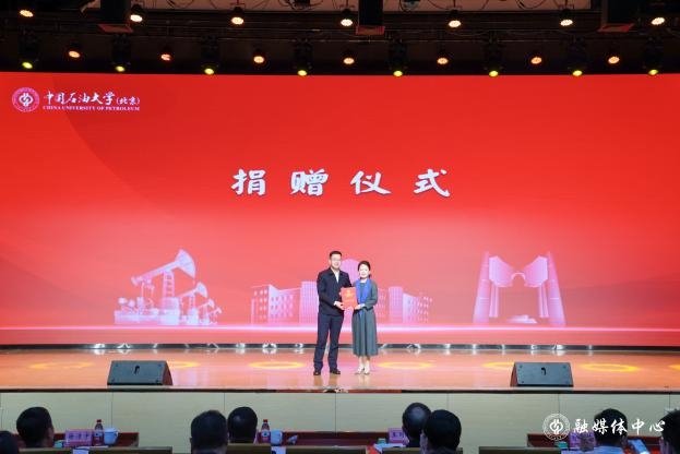 12月26日,中国石油大学(北京)2025年“挺膺担当 能源报国”学生表彰大会在中油大厦报告厅举行。在宝丰能源董事长、燕宝慈善基金会理事长党彦宝的引领下,宝丰集团·燕宝慈善基金会正式在石油大学设立燕宝奖学金,每年奖励100名学习成绩优异、科研能力显著、发展潜力突出的优秀学生,鼓励青年学子将个人学术理想融入民族复兴伟业,勇担时代重任,潜心科技攻关、勇攀科研高峰,成长为支撑国家科技自立自强、助推民族复兴伟业的栋梁之才。文永红代表学校向边海燕副理事长颁发捐赠证书。