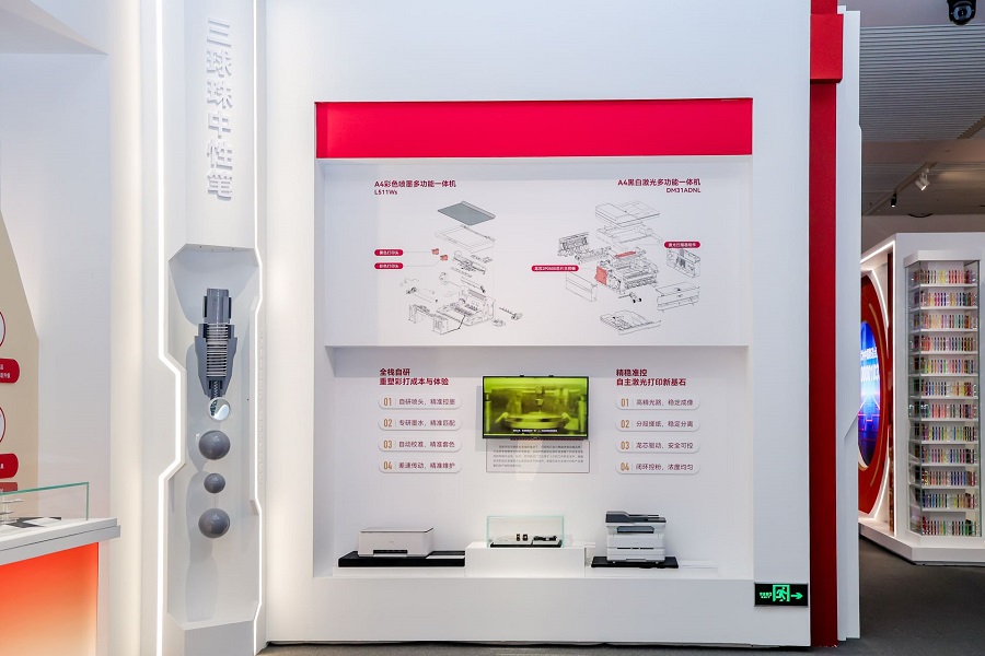 经过十年攻坚,得力已成为中国首家同时掌握激光、喷墨、热敏和针式打印核心技术,且唯一拥有打印全品类产品矩阵的企业,实现从核心部件到整机系统的自研自产,为用户提供安全可靠的国产化打印解决方案。本次展览中,得力重点呈现了喷墨与激光两大技术成果。在喷墨打印领域,得力实现喷墨打印头自主研发,喷头采用MEMS 工艺制造,融合光刻、刻蚀、薄膜等数十道工艺,实现 1200×1200dpi高精度输出,填补国产厂商在喷墨核心部件领域的空白,推进国产打印产业进程。在激光打印领域,得力实现激光打印引擎国产化。基于龙芯国产主控芯片,实现 LSU激光扫描组件、主控板及引擎结构的全栈自研自产,并通过国产系统与固件的深度适配,为国产打印设备注入自主可控基因。