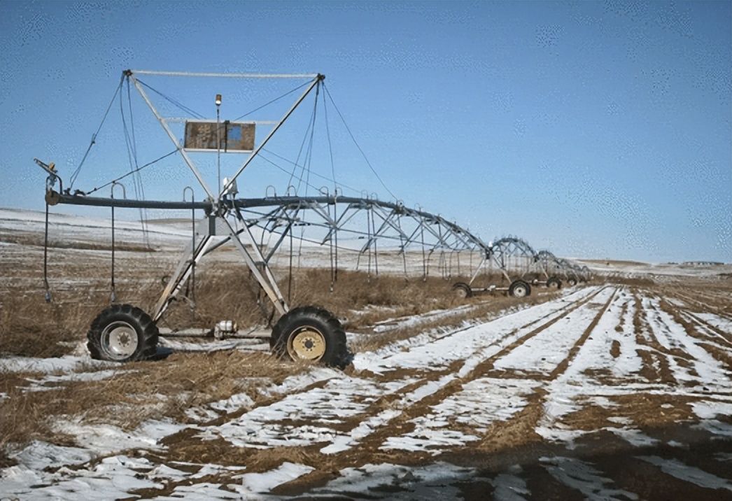 水电不分家。打出100米深井后,他就开始拉长电,架设高压线,安装变压器,十几里的坑都是他和工人用铁锹人工挖的。“虽然需要的坑特别深,当时也没觉得累,只觉得有了电以后,就能上喷灌机了。”直到2016年,李来成陆续购买安装了13个喷灌机,其中包括二级提水灌机3个,三级提水灌机3个。就这样,他建起了庞大的喷灌系统。巨大的带轮喷灌圈在土地上缓缓移动,如同施下魔法一般,几千亩旱地硬是变成了水浇地,渐渐实现了机械化作业。