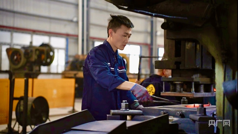 “飞天”刀剪第五代传承人黎勇正在打铁(央广网记者 白刁尹 摄)