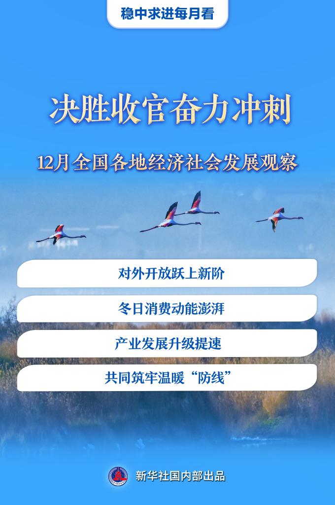 新华社北京12月30日电 对外开放步伐持续加快,冬日消费活力十足,产业科技深入融合,多方合力确保群众温暖过冬……12月以来,我国经济保持稳中有进发展态势,高质量发展取得新成效,经济社会发展信心和动力不断增强。