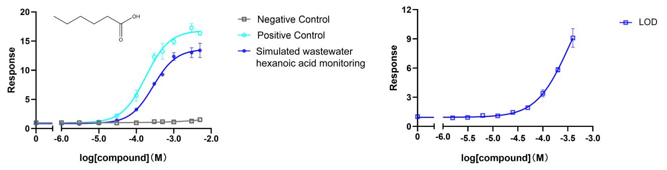 灵敏度与稳定性兼得:在复杂模拟废水中,对己酸的检测限低至25微摩尔,且在宽浓度范围内信号稳定。