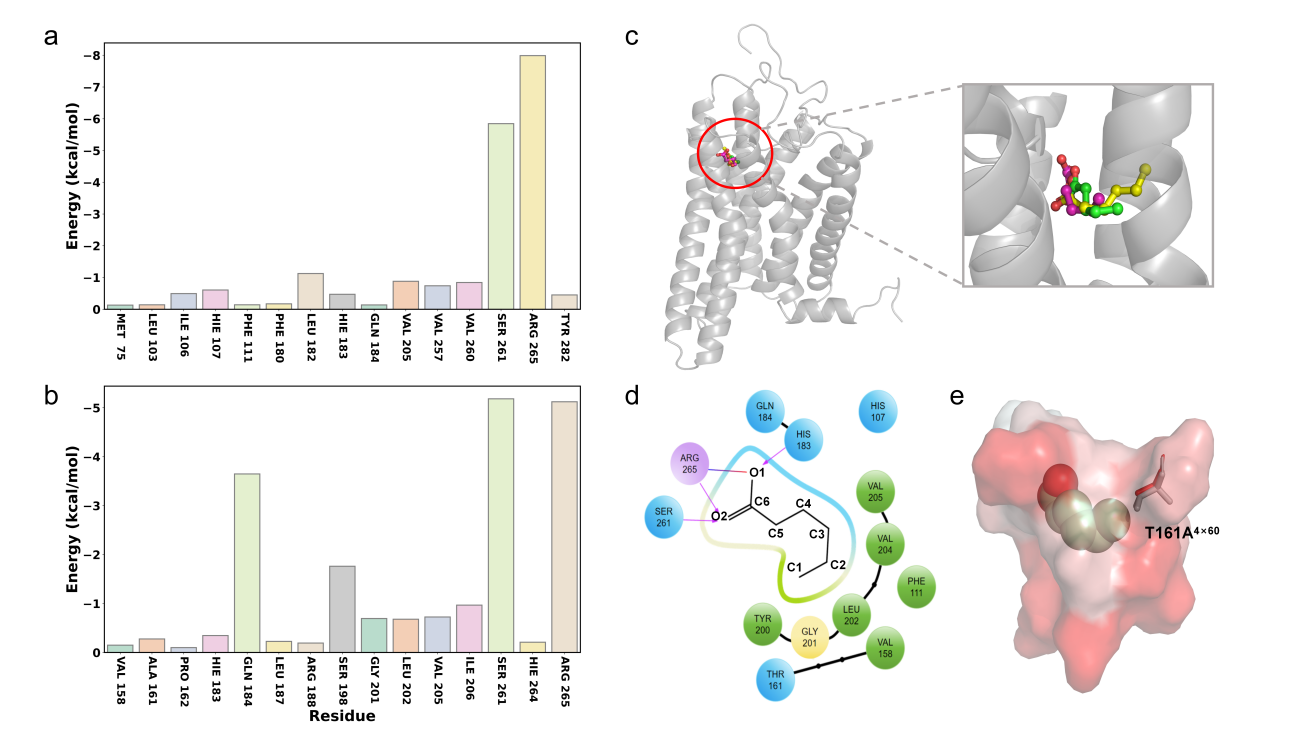 初始的OR51L1受体虽有用,但检测范围和灵敏度仍有局限。团队决定对这把“分子锁”进行精准升级。通过计算机模拟,他们对受体与脂肪酸的结合口袋进行原子级分析。模拟显示,口袋中第161位的苏氨酸,其体积和极性可能阻碍了与更长链脂肪酸的结合。团队据此设计了一个巧妙的单点突变:将苏氨酸替换为更小巧、疏水的丙氨酸。这如同对锁芯进行了一次精密打磨,旨在优化内部空间,增强与疏水脂肪酸链的兼容性。