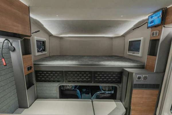 为满足全球高端用户期待,该车型在工艺与体验上全面升级。车身采用创新铆接航空铝合金厢体与塔式柔性连接技术,在轻量化同时大幅提升车身抗扭性与长途耐久性。车内空间经科学规划,集成起居、厨卫等多功能区域,并配备全车48V电路系统、大功率太阳能板及逆变器,保障在偏远地区的能源自持与旅居舒适度,实现了硬派越野与精致生活的完美平衡。