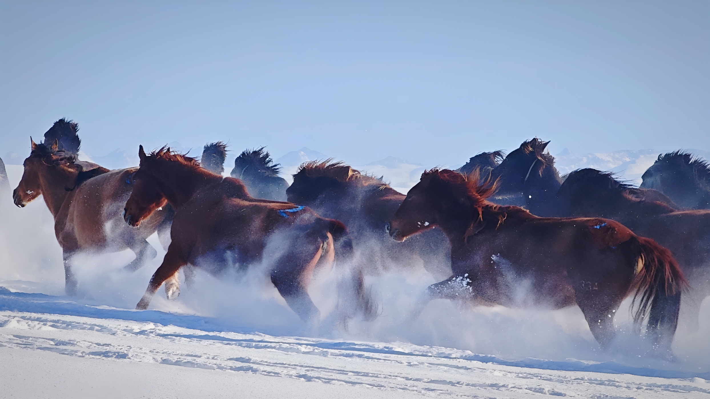 2025年12月25日,马群在昭苏湿地公园景区内的雪地上驰骋。新华社记者 王泽宇 摄