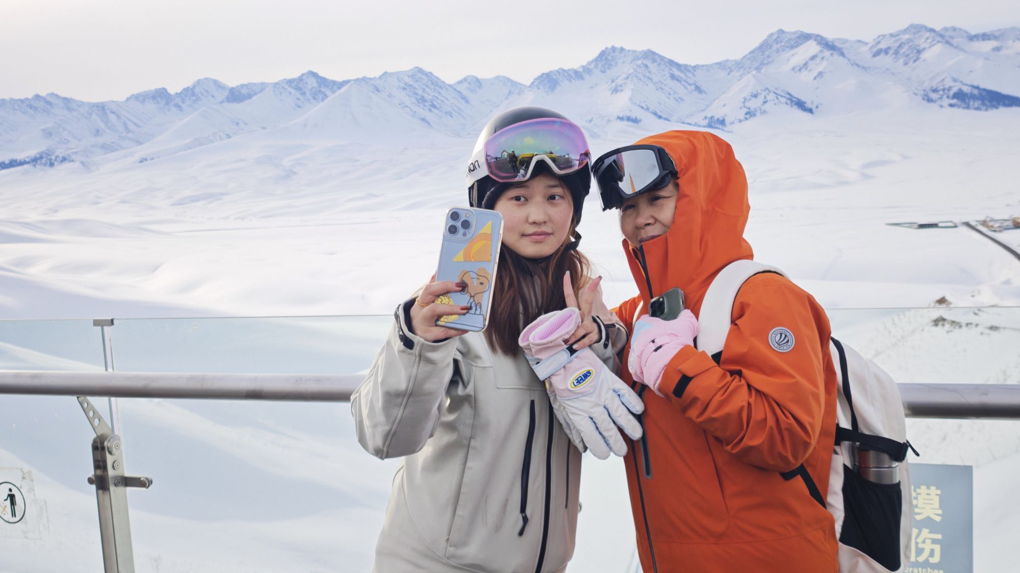 2025年12月24日,游客在那拉提景区内的天界台栈道上合影留念。新华社记者 王泽宇 摄