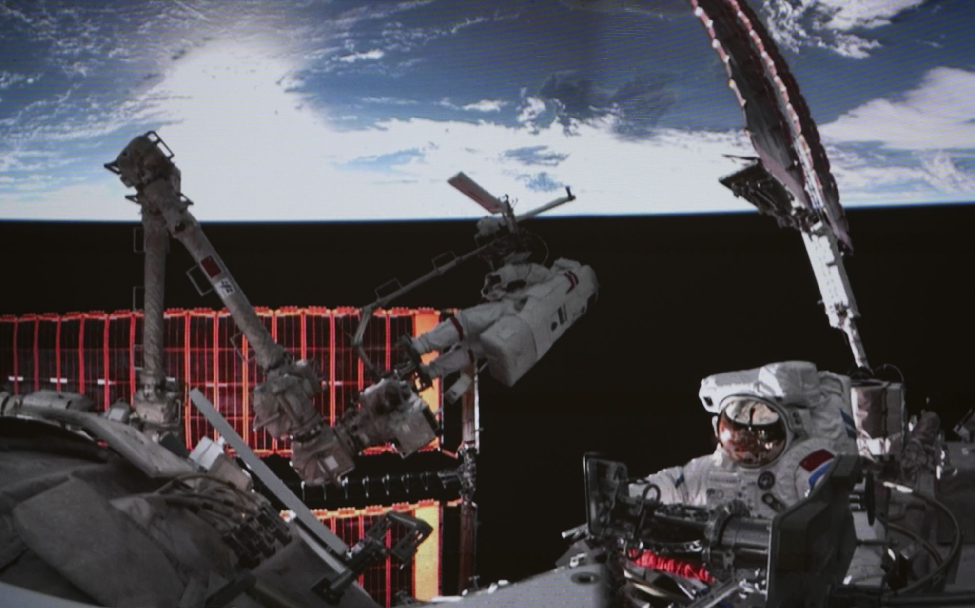 2025年12月9日,神舟二十一号乘组航天员张陆、武飞、张洪章密切协同,圆满完成第一次出舱活动。新华社记者 刘艺 摄