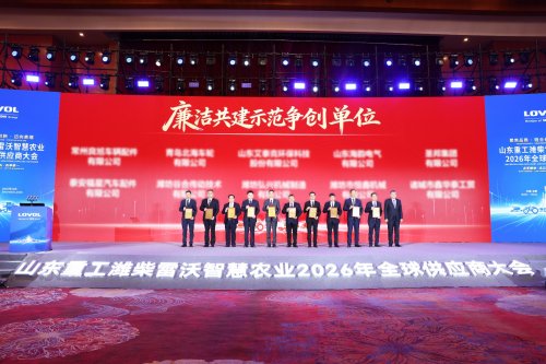 为树立行业标杆、凝聚合作共识,潍柴雷沃智慧农业在大会上对2025年度优秀供应商进行了表彰,并公布了首批10家“廉洁共建示范争创单位”,发布廉洁共建示范单位争创标准,为树立廉洁经营标杆、推动廉洁合作从“协议约束”向“深度融合”转变提供了可复制、可推广的实践样本,也为护航企业高质量发展注入了强劲的“廉”动力。