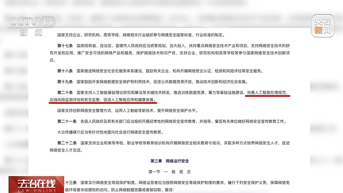 新修订的《中华人民共和国网络安全法》第二十条明确提出,要“完善人工智能伦理规范,加强风险监测评估和安全监管,促进人工智能应用和健康发展”。