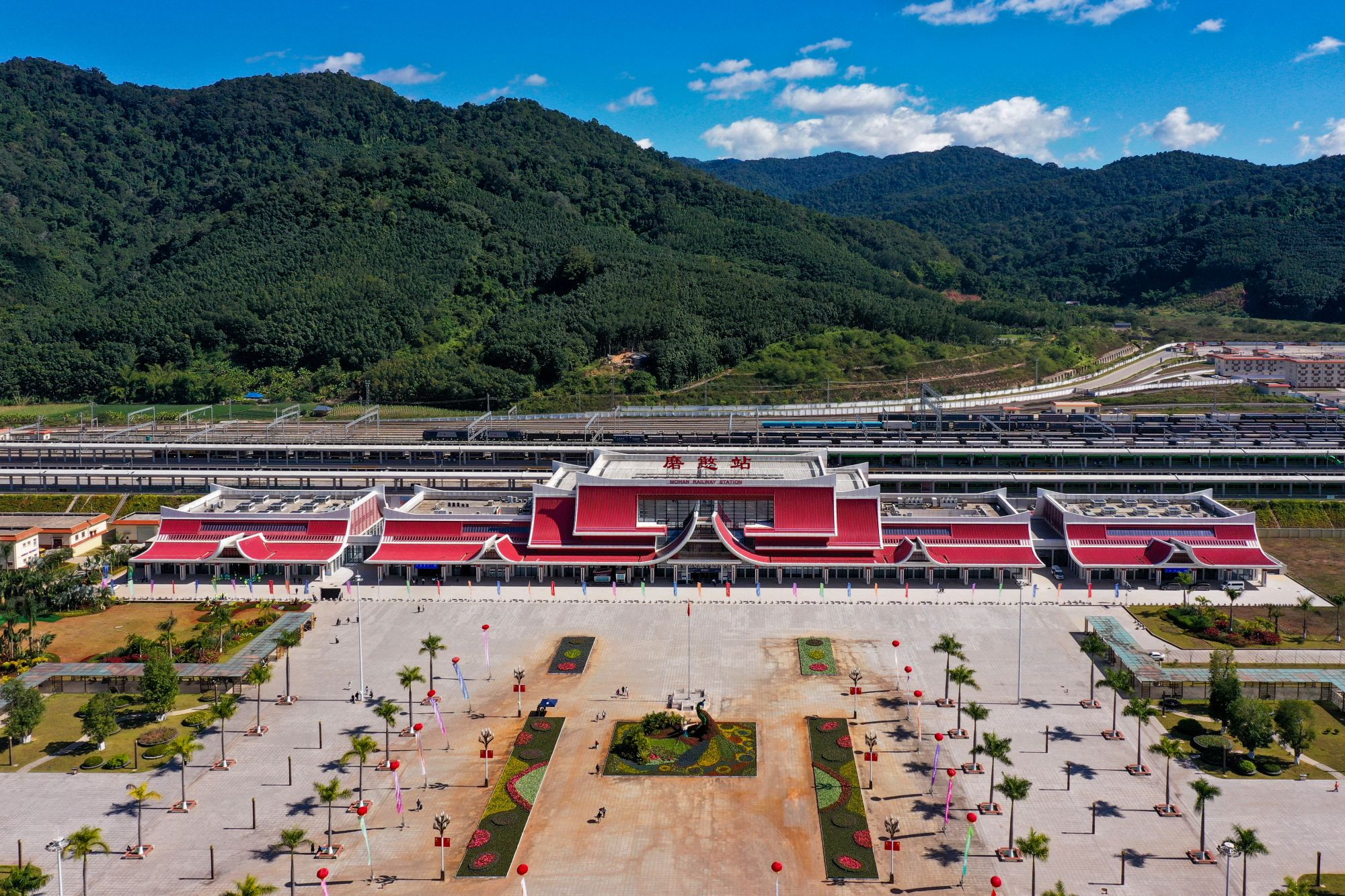 俯瞰中老铁路磨憨站。新华社记者陈欣波 摄
