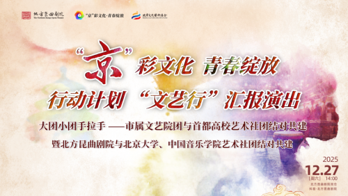 2025年12月27日,岁末一个寒冷的周六,北方昆曲剧院戏仓内却是热火朝天:丝竹声声,曲调悠扬,台上台下随处可见忙碌的身影——在练习台步和唱腔,“‘京’彩文化 青春绽放”行动计划“文艺行”“大团小团手拉手——市属文艺院团与首都高校艺术社团结对共建”暨北方昆曲剧院与北京大学、中国音乐学院艺术社团结对共建汇报演出即将隆重上演并同步直播。