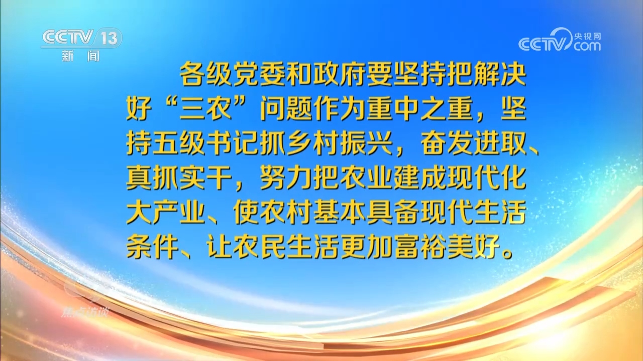 党中央高度重视这次会议。会前,中央政治局常委会会议就开好这次会议、做好“三农”工作提出明确要求。习近平总书记对“三农”工作作出重要指示,他就如何推进农业农村现代化、建设农业强国,从粮食安全、农民增收、乡村建设等方面提出了具体要求。