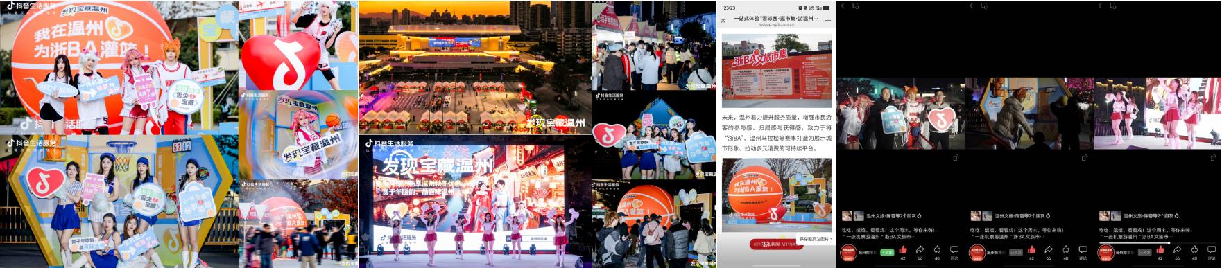活动期间,抖音生活服务联合温州文旅、温州体育局、温州都市报等政务机构与媒体,共同打造线下核心消费场景——#浙BA市集,以“体育+商业+文旅”融合模式,实现“线上引流-线下消费-线上二次传播”的闭环,有效激活本地消费市场活力,为商户搭建起直面消费者的互动平台。