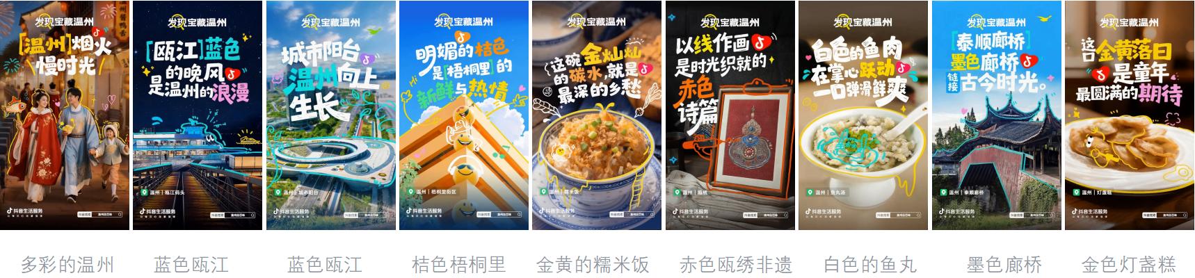 活动首次深度联动温州文旅,创新推出【宝藏温州色彩图鉴】系列城市海报,将温州特色具象化、可视化,让参与商户自然融入城市文化场景的同时,实现活动引流。