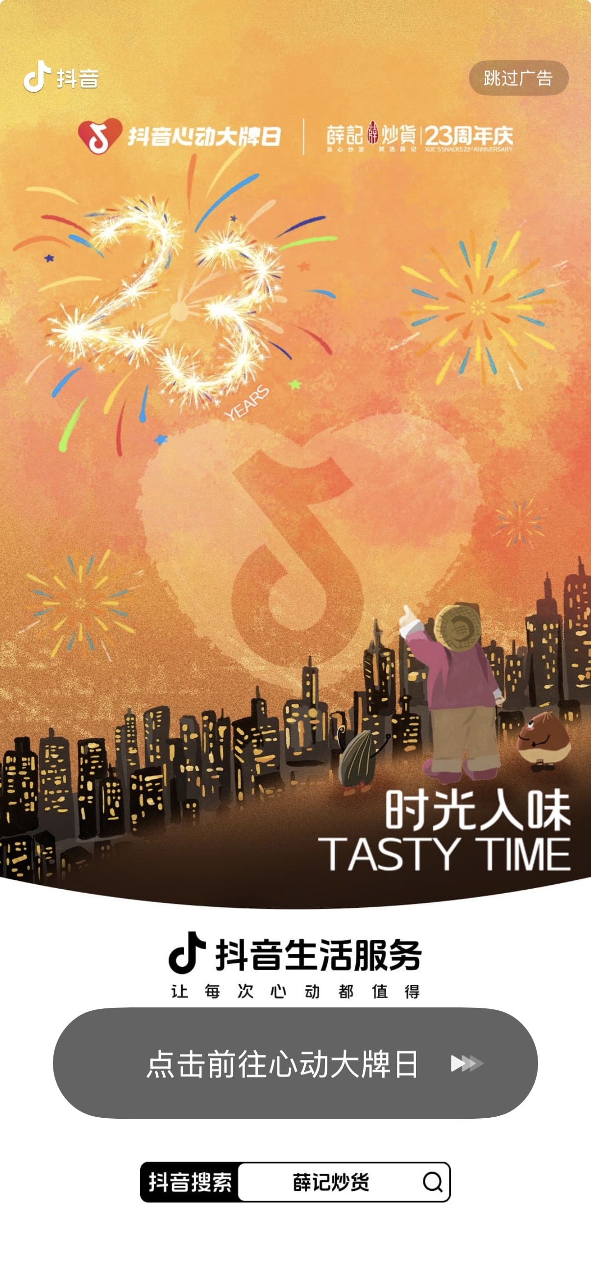 正是这份对初心的坚守,与「抖音心动大牌日」追求品质生活、打造优质消费体验的理念不谋而合。在品牌步入第23个年头的关键节点,双方携手,以“时光入味 · 薛记炒货23周年庆”为主题,于12月12日—12月25日,策划了这场既是销售冲刺、更是品牌升华的年度盛宴。通过「抖音心动大牌日」这个拥有巨大声量和丰富内容形态的舞台,不仅让利回馈千万家,更要将品牌二十三年如一日对产品、对顾客的“入味”之心,娓娓道来。