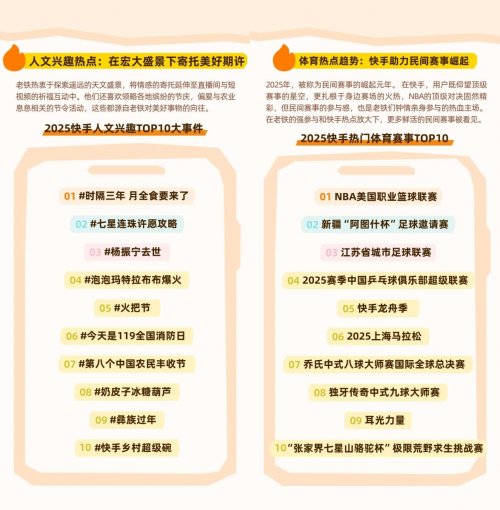 报告显示,快手用户既关注家国大事,也聚焦日常生活。他们对普通人的故事、节日热点、区域动态和民间赛事表现出强烈共鸣,形成了平台独特的情感基调。