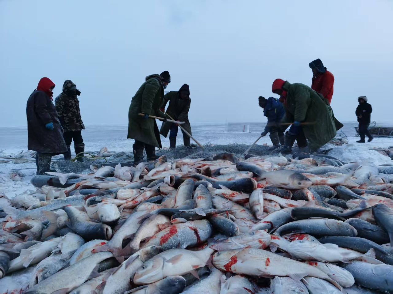 自从当年《舌尖上的中国》热播之后,查干湖冬捕逐渐变得家喻户晓。如今,查干湖冬捕早已超越单纯的渔业生产,成为一项蔚为壮观的文化景观与冬季旅游名片。每年冬至前后至春节,是查干湖捕鱼的黄金时节。渔民们在鱼把头的带领下分工协作,通过冰下走网,在厚达一米以上的冰层上作业。当长达上千米的大网从冰洞被拽出,无数鲜活的胖头鱼、鲤鱼在瞬间跃出水面,于凛冽空气中蒸腾起一片白茫茫的“水雾云霞”,构成一幅“冰湖腾鱼”的震撼画面。