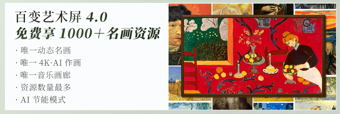 不仅如此,为了让大家足不出户“逛画展”,创维A7H内置了「百变艺术屏4.0」,提供超过1000幅全球名家的精品名画,全部终身免费使用。