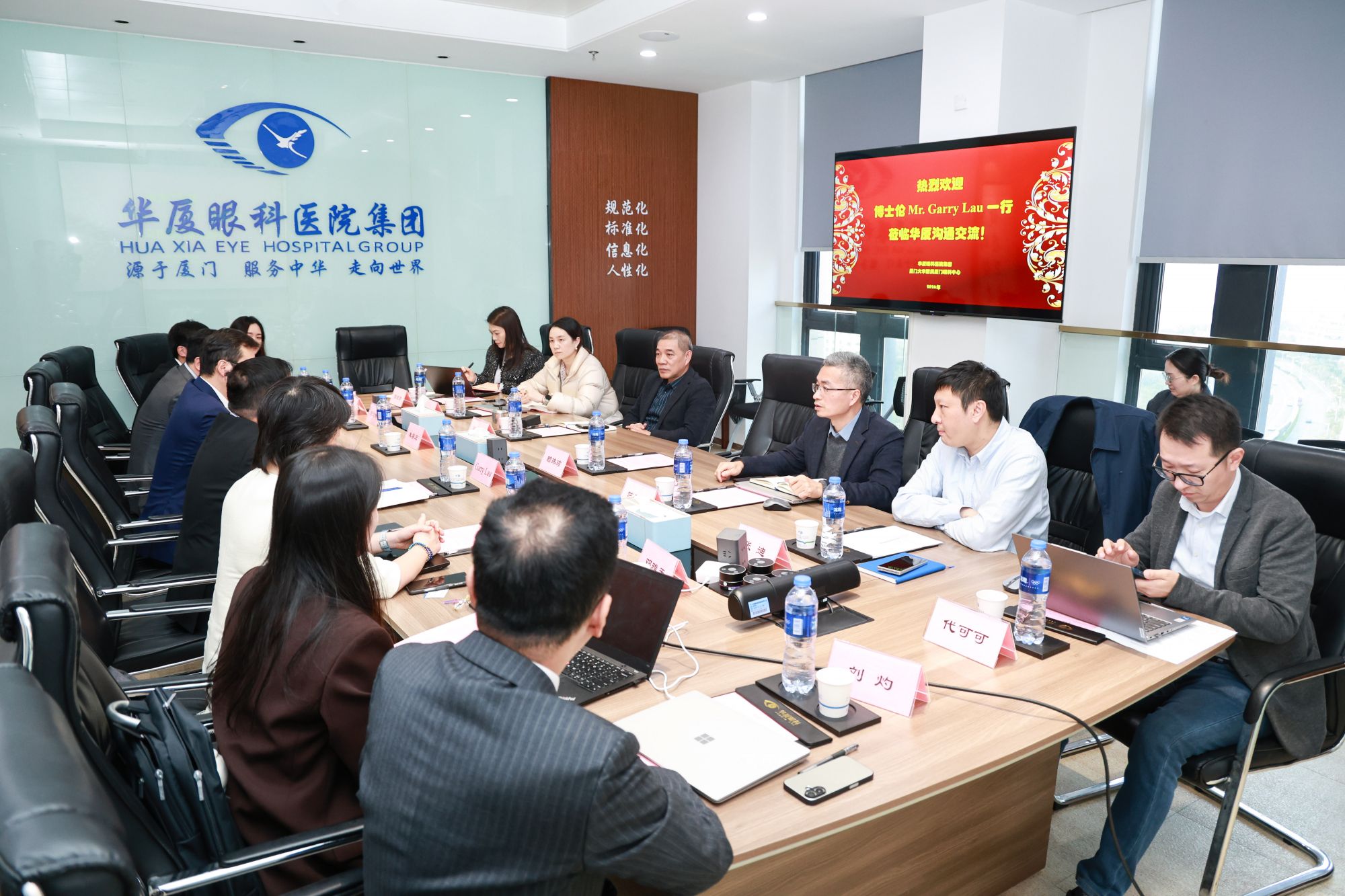 2026年1月5日,博士伦公司事业部总监Garry Lau、国药瑞德医疗器材有限公司总经理朱鼎宏一行到访华厦眼科。集团领导陈凤国携相关部门负责人热情接待,围绕眼病手术领域的技术革新、临床应用与服务质量提升,展开深度座谈交流。此次战略对话旨在进一步深化战略合作,共同探索眼病手术诊疗新模式,推动眼病服务向更高品质、更精准、更可及的方向迈进。