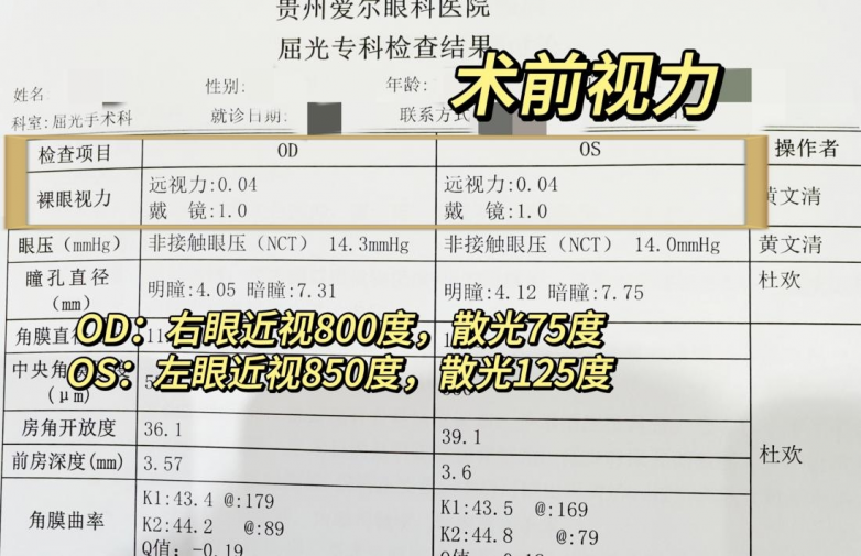 接诊的贵州爱尔屈光科主任廖进军,作为贵州省内较早开展个性化屈光手术的专家之一,对高度近视矫正有着丰富的临床经验。经过详细检查,廖主任发现小杰不仅度数高,散光情况也较为复杂。