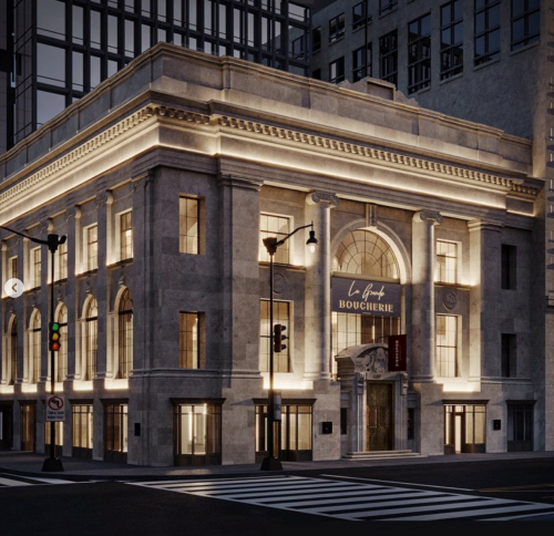 • La Grande Boucherie - (2025年4月18日开业)选址于白宫附近历史悠久的市中心银行旧址,其建筑由法国建筑师于1920年代参与设计。这家法式小酒馆以鎏金穹顶和百年水晶吊灯为特色,菜单融合经典与现代法式菜肴,提供丰富的肉类料理及生鲜吧台。