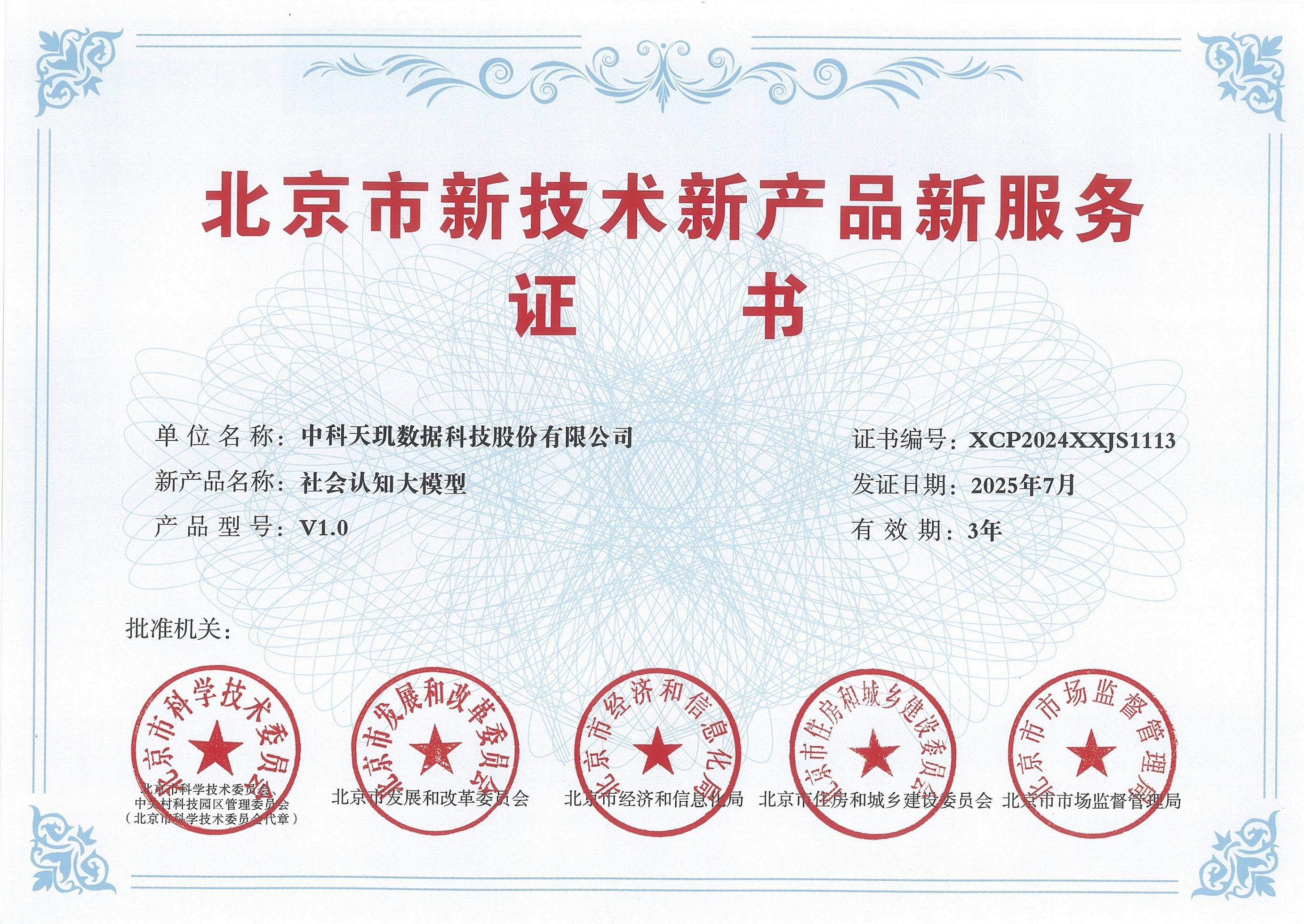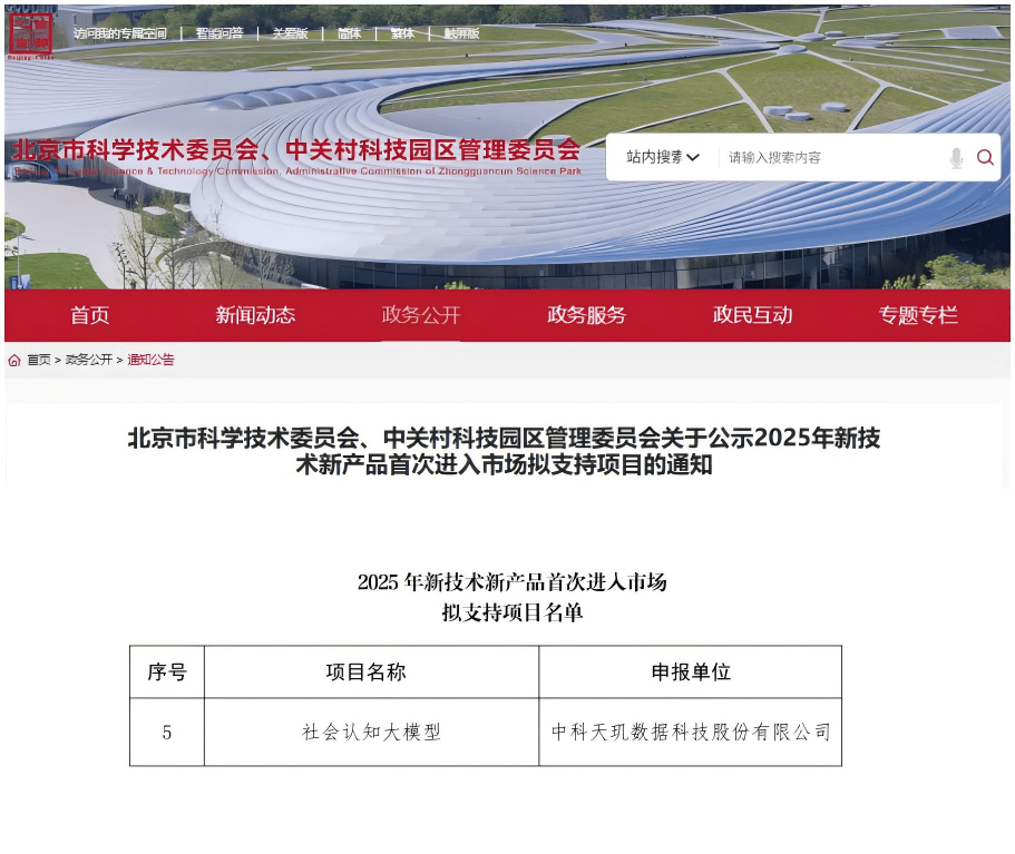 凭借突出的创新性、可靠性与应用价值,中科天玑“社会认知大模型”项目已成功入选北京市“新技术新产品首次进入市场”支持计划。这不仅是对其技术领先性与市场前景的权威认可,更是对其推动人工智能国产化产业链发展、赋能千行百业数字化转型社会效益的肯定。