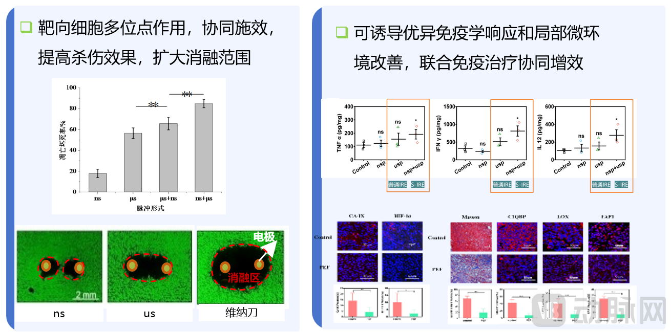 癌症是全人类致力于攻克的世界性难题,治疗形势严峻。2000 年,团队在国际上率先提出了高压脉冲电场诱导肿瘤细胞发生不可逆电穿孔而进行肿瘤治疗的全新癌症治疗新途径。该方法具有消融病灶、保护重要血管/神经等健康组织的非热选择性优势,可突破现有治疗技术临床禁区;同时,其优异免疫学响应和对实体肿瘤微环境的改善作用可使其作为当前最有利的肿瘤减容利器及免疫/细胞治疗的强效剂,具有广阔临床前景。