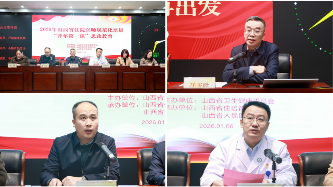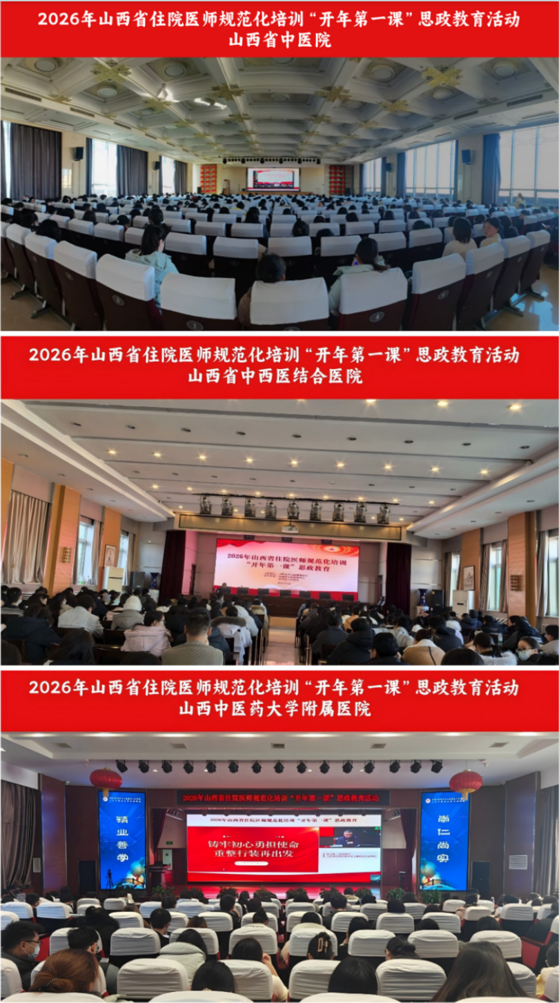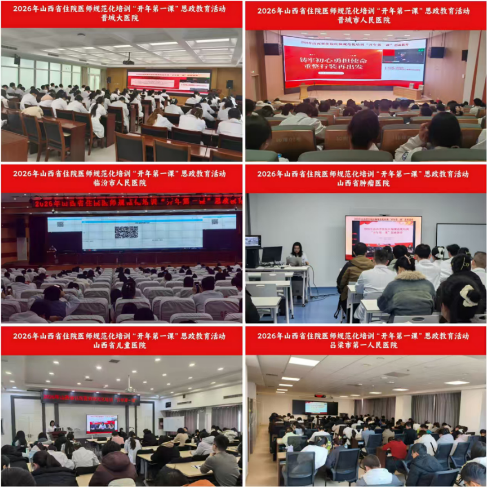 2026年1月6日,由山西省卫生健康委员会主办、山西卫生健康职业学院(山西省住培管理中心)承办的住院医师规范化培训“开年第一课” 思政教育活动在主会场(山西省人民医院)圆满举办。本次活动以“铸牢初心 勇担使命 重整行装再出发——新时代住院医师的责任与担当”为主题,采取“线下集中授课+线上直播”相结合的方式,线下覆盖住院医师及并轨研究生约400人,住培办全体教职员工共同参与;线上同步面向全省住院医师规范化培训学员及助理全科培训学员,共计覆盖学员7000余人,形成了广泛参与、同步学习的热烈氛围。