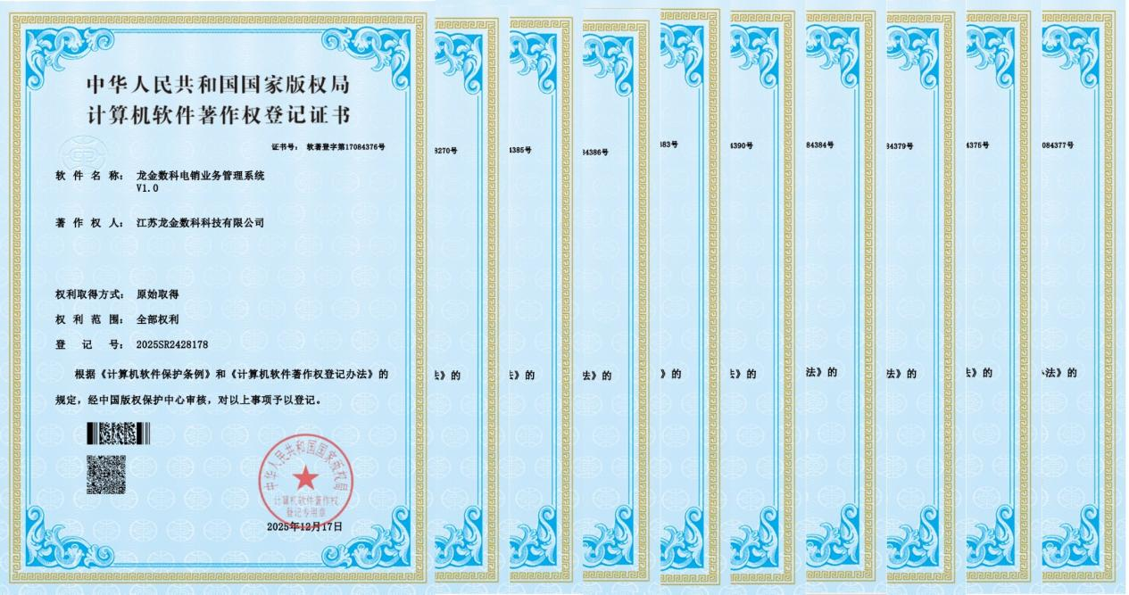 在国家推动金融科技稳健发展、汽车产业加速数字化转型的背景下,垂直领域的深度创新成为服务实体经济的关键。近日,专注于汽车金融领域的龙金数科宣布,公司已于2025年12月获得10项国家计算机软件著作权登记证书。至此,龙金数科已累计拥有近20项软著,标志着其在汽车金融科技领域的自主研发与知识产权体系构建取得系统性成果。这不仅是一次数量的集中增长,更是其围绕产业痛点构建完整数字化解决方案能力的集中亮相。