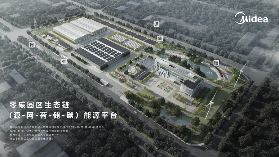 资料显示,合康新能美的新能源在工商业领域已落地近 200个项目,覆盖航空航天、化学纤维制造、机器人自动化、智能制造等多个行业领域。针对园区消纳瓶颈、碳管理滞后等痛点,美的新能源联合美的楼宇科技创新推出零碳园区生态链(源-网-荷-储-碳)能源平台,从供能、输能、储能、用能到能源回收五大维度,提供一站式绿色零碳解决方案。针对客户需求,美的新能源推出“能闪送”金融模式,助力工商业客户以低成本快速实现绿色能源应用转型。同时,积极推动虚拟电厂聚合平台建设,通过能源数据实时监测与统一调控,助力园区实现高效用能。