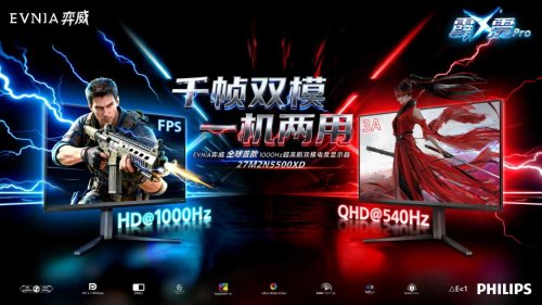 对于FPS核心玩家来说,电竞对决的胜负往往只在毫秒之间。当你还在纠结240Hz和360Hz显示器的差距时,行业已经迎来了千帧的革命性突破。那么千帧电竞显示器选哪款?EVNIA弈威27M2N5500XD就是非常理想的选择。作为全球首款千帧显示器,它直接将电竞体验拉到了新高度,再次点燃了玩家的热情。