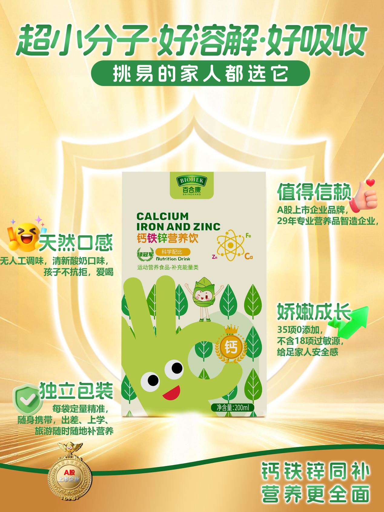 在儿童营养补充需求日益精细化的今天,绿冠军钙铁锌营养饮以科技赋能品质,以匠心守护成长。未来,绿冠军将继续深耕儿童营养领域,持续迭代创新,为孩子们的健康成长保驾护航。