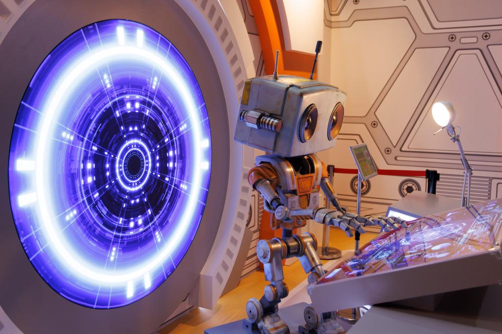 2025年6月28日在中国科学技术馆《Project X:星际友好计划》航天科幻扩展现实(XR)大空间体验展拍摄的人工智能机器人星启8号。新华社记者金立旺摄