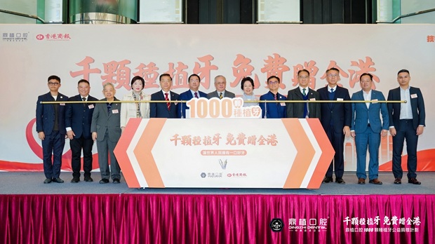活动由鼎植口腔牵头,联合香港商报、产业链伙伴及多家公益组织,汇聚政企社多方力量,计划于2026年内为1000位符合条件的香港缺牙长者免费提供种植牙服务,总价值逾千万港元,凭前沿技术破解长者看牙难题,守护晚年口腔健康。