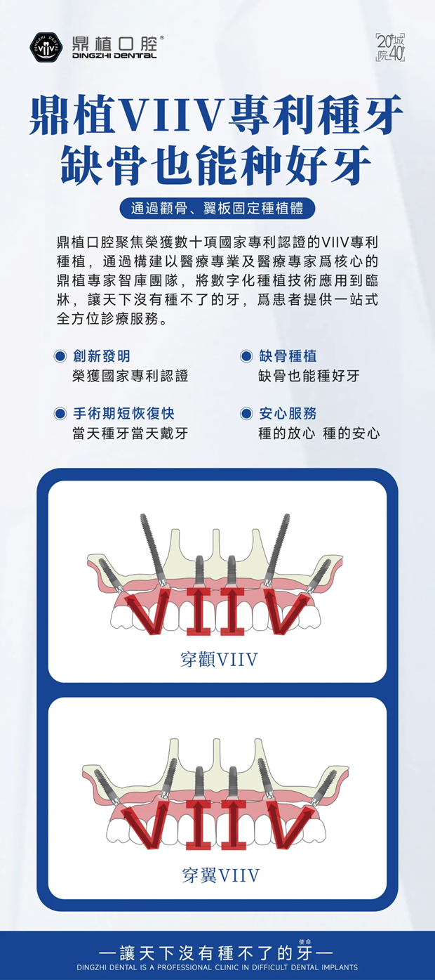 公益行动的落地,离不开硬核技术支撑。此次项目全面依托由鼎植口腔黎强博士、高振华院长参与研发的VIIV穿颧穿翼专利种植技术,该技术斩获数十项国家专利认证,被称为种植届的“珠穆朗玛”。