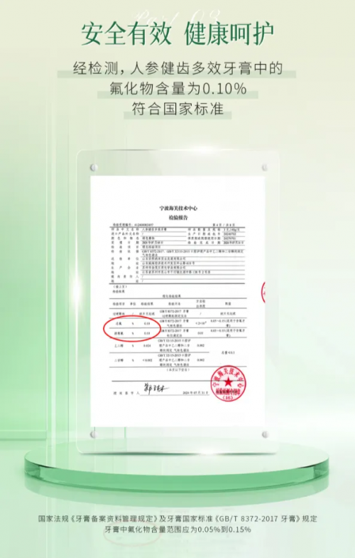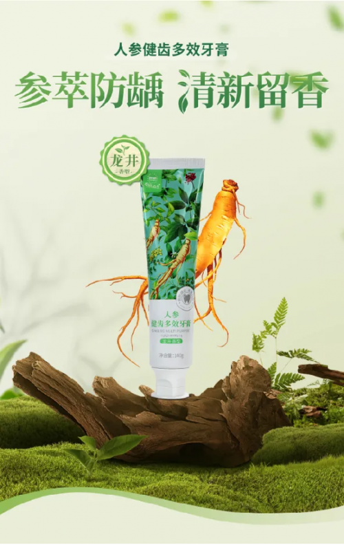 这款产品添加了人参根提取物、黄岑根提取物、三七根提取物、丹皮酚,给你的牙齿满满的保护!