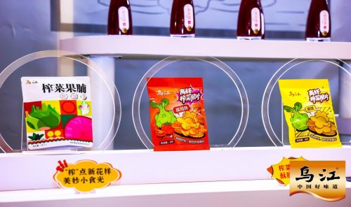 在创新延伸板块,乌江榨菜脆片全新亮相,既有薯片般的酥脆快感,又能做到零脂肪、零负担,还自带天然咸鲜风味;乳酸菌发酵工艺、每瓶含有10亿级活性益生菌的胭脂萝卜果汁,让萝卜也能喝出高级感;古法果脯慢腌结合现代烘烤工艺的榨菜果脯,成为“地方特色休闲食品”新名片。
