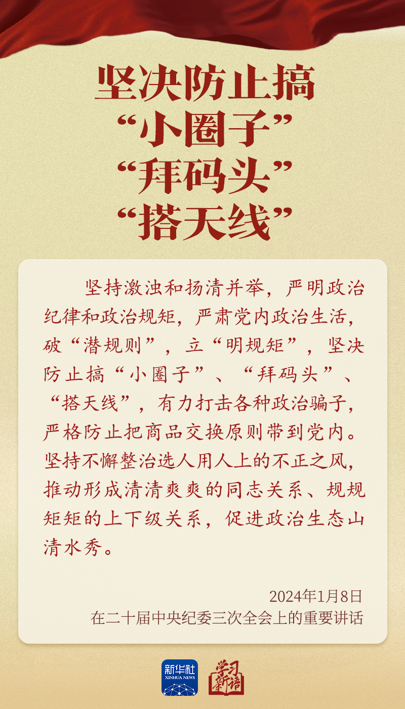 二十届中央纪委五次全会将于1月12日至14日召开。治国必先治党,治党务必从严。本期“学习新语”,我们从习近平总书记出席中央纪委全会的历次讲话中,选取关于全面从严治党之喻,一起学习领悟其中深意。