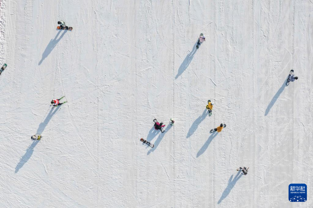 人们在呼和浩特马鬃山滑雪场滑雪(2025年12月14日摄,无人机照片)。新华社记者 李志鹏 摄