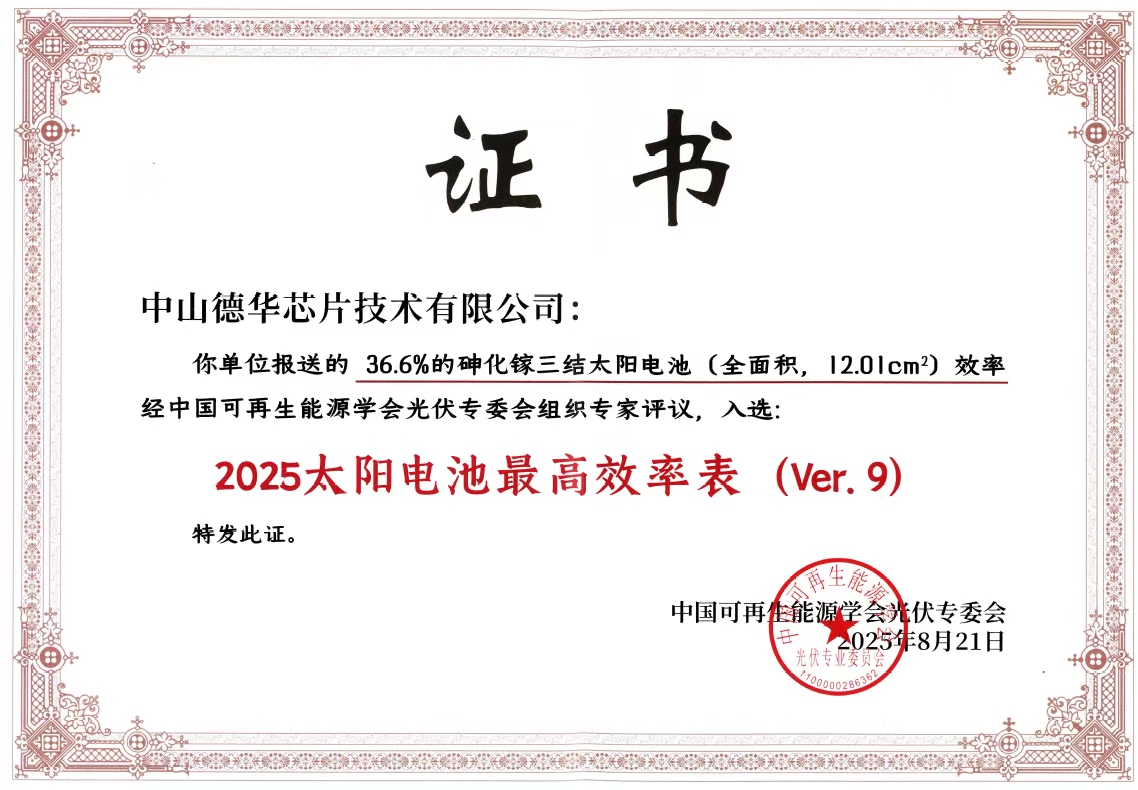 行业内中山德华芯片研制的柔性电池量产实测在轨效率达33.5%
