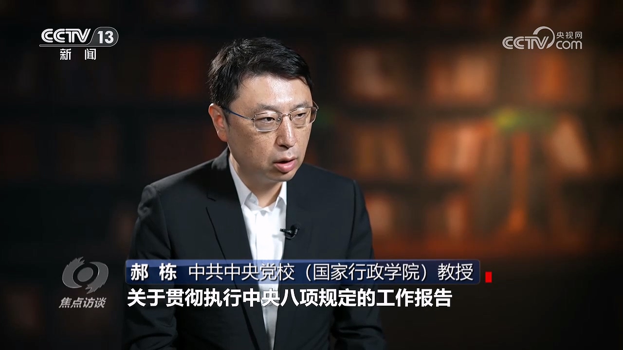 中共中央党校(国家行政学院)教授郝栋:“每到岁末,听取中央政治局同志关于贯彻执行中央八项规定的工作报告,已经成为新时代走好群众路线,做好党的自我革命的一种制度性安排,同时也释放了这样一种信号,贯彻执行中央八项规定,从中央政治局的同志以身作则、以上率下做起,让大家真正看到,贯彻执行这项规矩没有禁区、没有死角。”