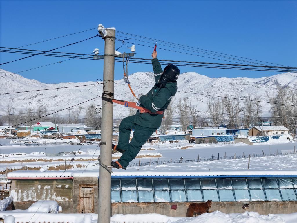 1月16日,吐尔洪乡供电所员工来到村民家中解决用电故障。新华社记者 胡虎虎 摄