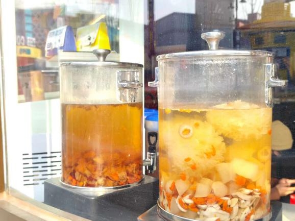 “马蹄桑葚茶”,以马蹄的清甜搭配桑葚的滋补,口感与功效兼具;“玉梨润津露”则用梨的润喉特性,在干燥季节为消费者带来温润滋养。这种“喝得美味,补得科学”的体验,让消费者在享受味蕾愉悦的同时,收获健康呵护。一位刚游览结束的游客说:“冬天在室外玩一天,来一口这个茶饮又暖和又滋润。”