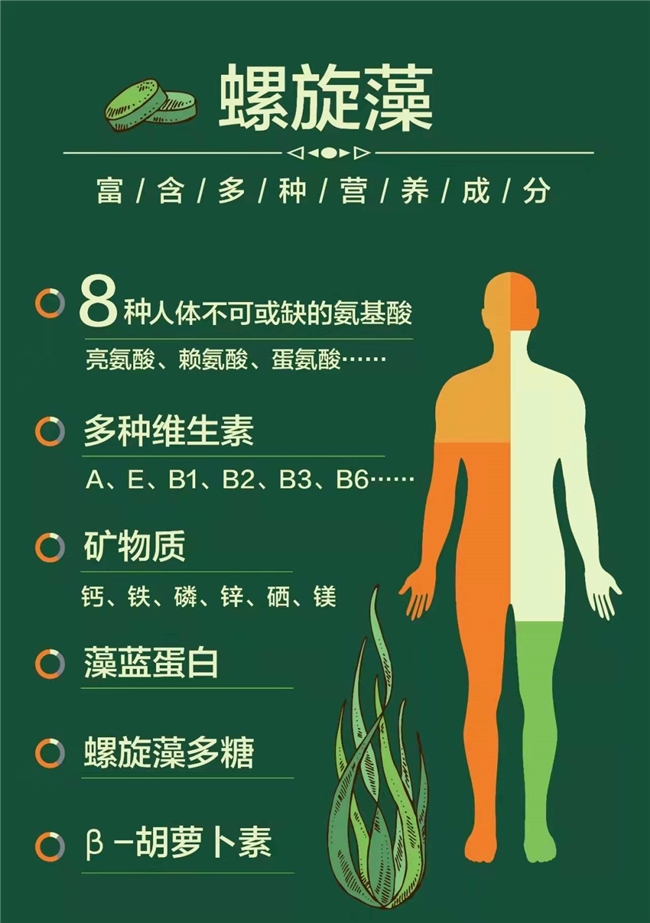 新版膳食指南强调优先选择营养密度高的天然食物,而螺旋藻无疑是这方面的佼佼者。螺旋藻虽然体积微小,但蕴含着极其丰富的营养成分。除了高含量的优质蛋白外,还富含螺旋藻多糖、γ-亚麻酸、叶绿素、藻蓝蛋白等生物活性物质、多种维生素以及钙、镁、铁、钠、钾、锌、硒等矿物元素和微量元素,被营养学家誉为“超级营养包”。这些营养成分对人体具有改善免疫力、延缓衰老、调节血脂、抗肿瘤等诸多健康益处,对多种慢性疾病也具有辅助调节作用。