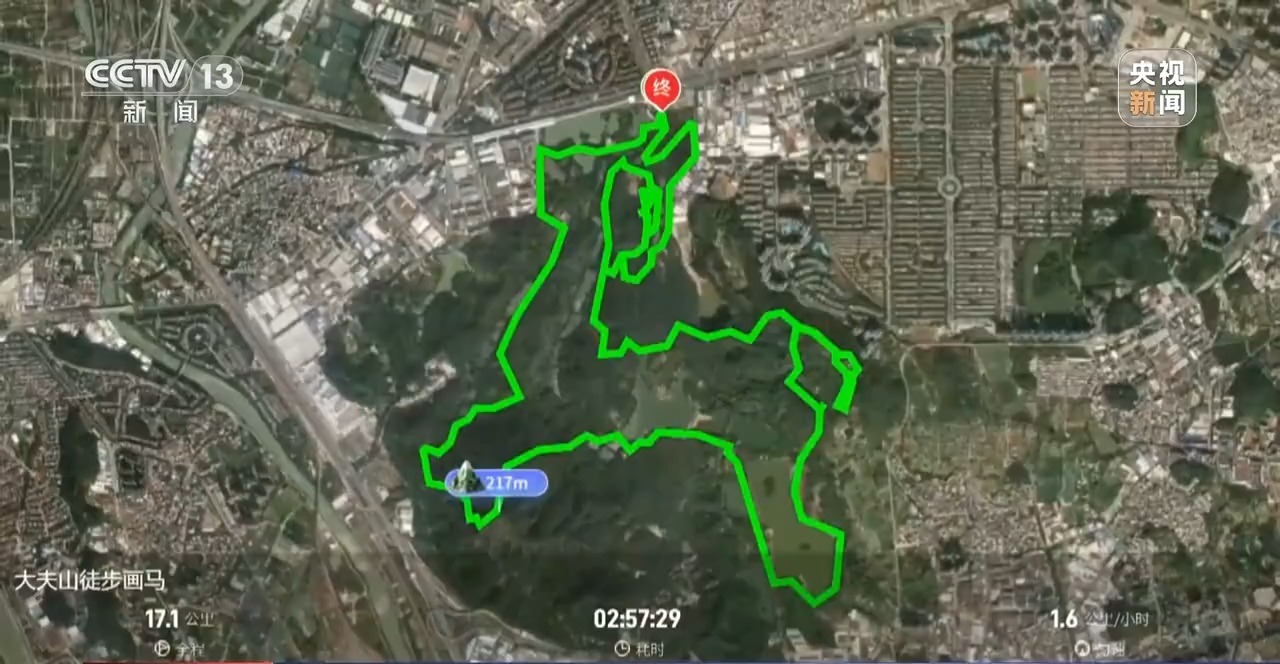 在广州番禺的大夫山森林公园,有一条已经被围挡拦住的小径。不久前,它还是网络上一条爆红徒步路线——“画马”的必经之处。所谓“画马”,是徒步者们利用运动软件的轨迹记录功能,将路线上的点位一个个串联起来,最终勾勒出马的图形。随着马年将至,它也成了社交媒体上流行的新玩法。人们以脚步为笔,在山川地图上勾勒骏马,寓意“一马当先”。