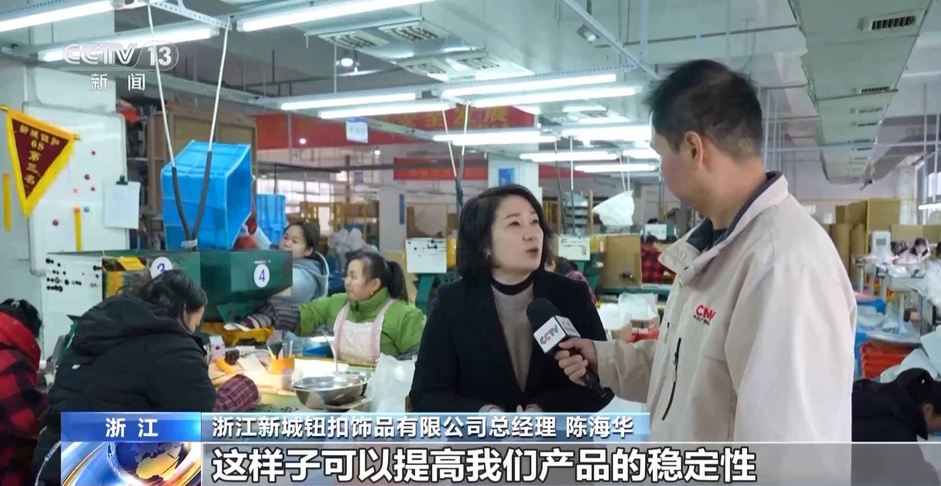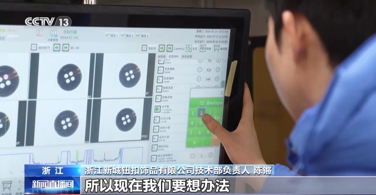 浙江新城钮扣饰品有限公司总经理 陈海华:它能够智能地去寻找纽扣次品,通过AI方式把它识别出来。0.01毫米精度检测,这样子可以提高我们产品的稳定性。
