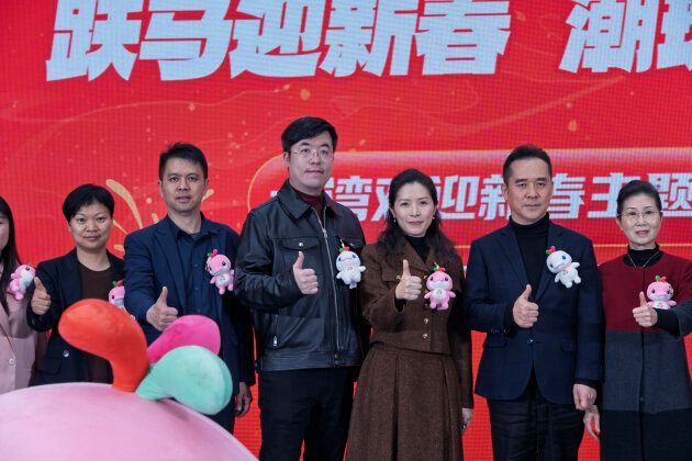 发布会亮点纷呈。暖场环节中,大湾鸡人偶、卡皮巴拉人偶及多个IP人偶穿梭于观众席间,与市民亲切互动,迅速点燃现场气氛。开场节目《鼓动新春》由正佳大剧院演艺团队呈现,结合大湾鸡互动,以激昂旋律点燃现场迎新氛围。